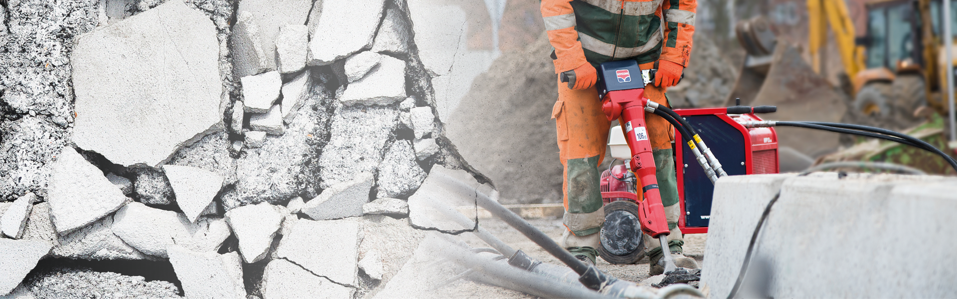 Der HYCON Hydraulische Abbruchhammer ist robust und kompakt. Aufgrund der Haupteigenschaften von Hydraulik ist er schlagkräftiger als jede andere Art von Hammer.