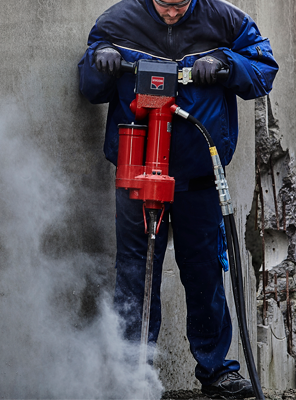 Das kompakte Design und die hohe Leistungs-fähigkeit des HRD30 hat eine enorme Schlagkraft, und das auch bei engen Platzverhältnissen. Der integrierte Kompressor und Linkslauf (CCW) machen den HRD30 zum effektivsten handgeführten hydraulischen Bohrhammer auf dem Markt. Mit seiner Bohrleistung von bis zu 2,4m