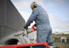 Die Säge wurde mit besonderem Augenmerk auf Ergonomie entwickelt. Ein integrierter Wandläufer verbessert die Benutzerfreundlichkeit, während die 2 Meter langen Peitschen-Schläuche dafür sorgen, dass die Kupplungen beim Schneiden auf dem Boden ruhen – so wird das Gewicht von der Säge genommen. Zudem lässt sich die Säge mühelos in unsere SawEZ-Führungsschiene einspannen und garantiert damit jederzeit einen perfekten Schnitt.