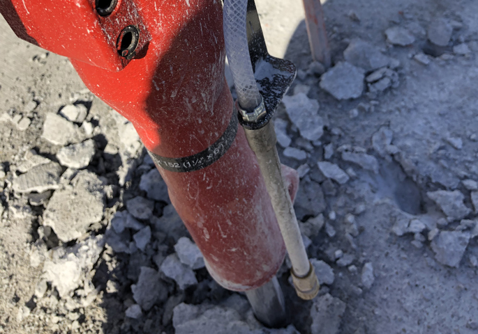 El agua que pulverizan los kits de eliminación de polvo de sílice de HYCON minimizan la exposición del operario al perjudicial polvo de sílice antes de que este se disperse