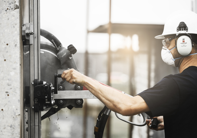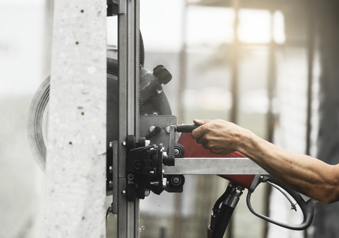 El raíl guía SawEZ es un sistema único desarrollado para que los contratistas y semiprofesionales puedan cortar paredes montadas como un profesional prescindiendo de cortadoras grandes y pesadas, y por el coste de una décima parte de un sistema de corte de paredes convencional.