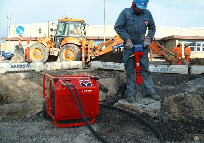 La HPP09 es compatible con todas las herramientas del 20 l.p.m. como martillos, cortadoras, bombas y taladros sacatestigos a un rendimiento máximo. Cuenta con un sistema de regulación hidráulica (potencia a demanda) que acelera automáticamente el motor cuando se activa la herramienta conectada.