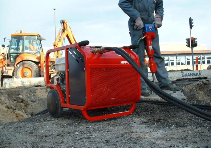 Es muy compacta, lo que permite su transporte en la parte trasera de un coche o en un utilitario. La inversión en esta Central Hidráulica y en un martillo suele ser inferior a la mitad del precio de un compresor de 4 m³ y un martillo, ofreciendo el mismo rendimiento.