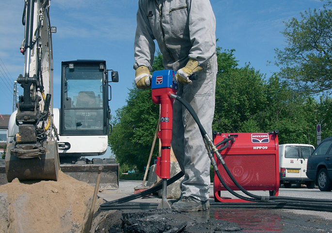 El HH20RV es la elección preferida de empresas municipales, contratistas, servicios, etc. y es perfecto para el sector del alquiler de maquinaria. Además, su rendimiento equivale o mejora el de cualquier martillo eléctrico de 30 kg. Este martillo se puede conectar a las centrales hidráulicas HYCON y otras fuentes de alimentación hidráulica.